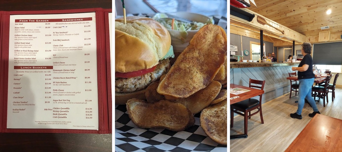 Very solid seafood experience!! 😋 Save room for dessert, or even better, start with it 😉 because the extensive list is homemade!! 😍 The fried Catfish was succulent and cooked perfectly. The sides were tasty, especially the Potato Salad and Onion Petals 👌!! Did I mention how good the Coconut Custard pie was?!?! If you're traveling Rt 17, stop in Tappahannock and enjoy a delicious leisurely lunch or dinner that won't break the bank 🏦💸 !!!
